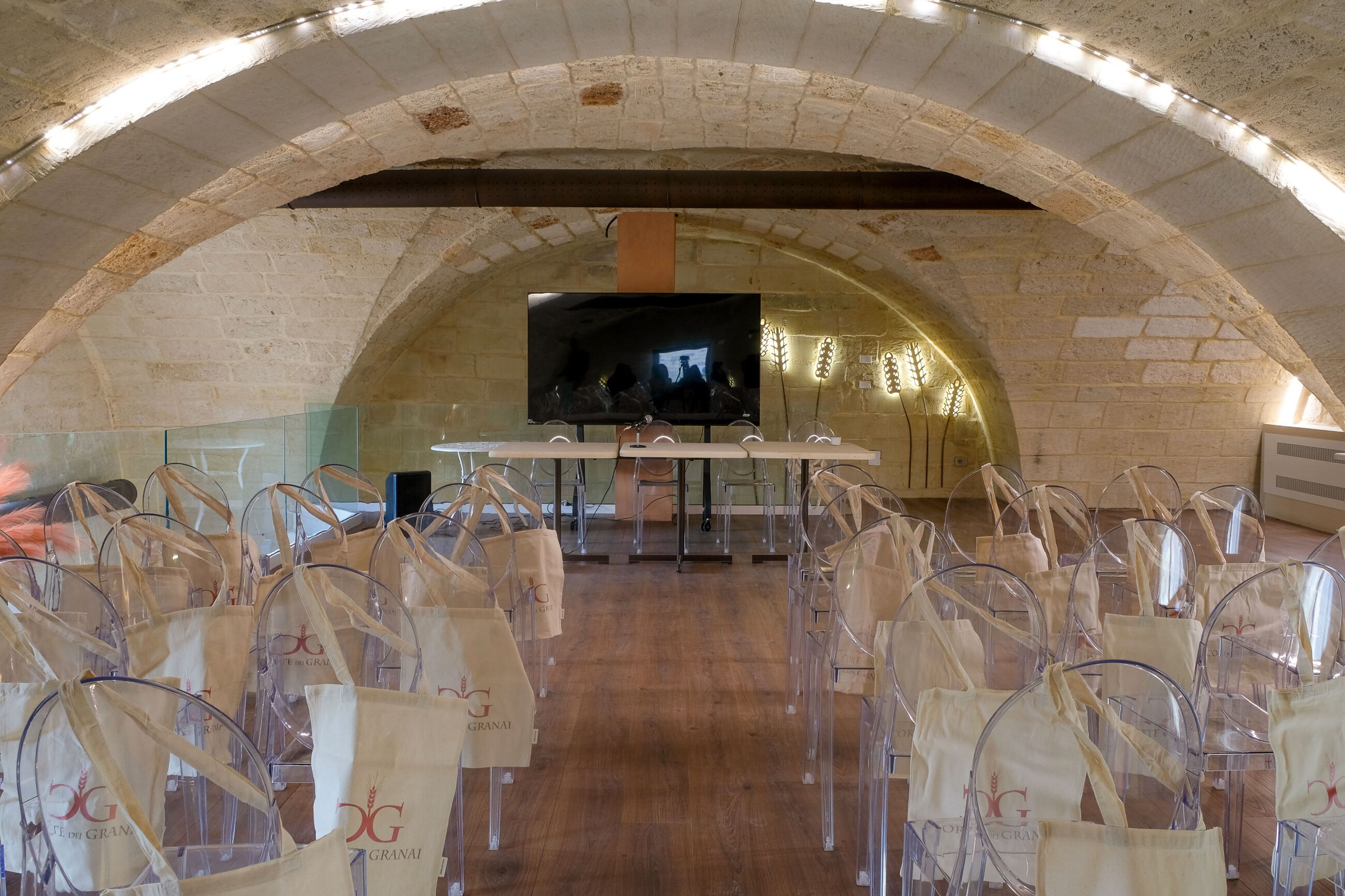 Corte dei Granai dispone di una sala meeting che può ospitare fino a 40 posti a sedere, fornita di tutto il necessario come microfoni e un grande televisore utile per proiettare e mostrare alla platea presentazioni.