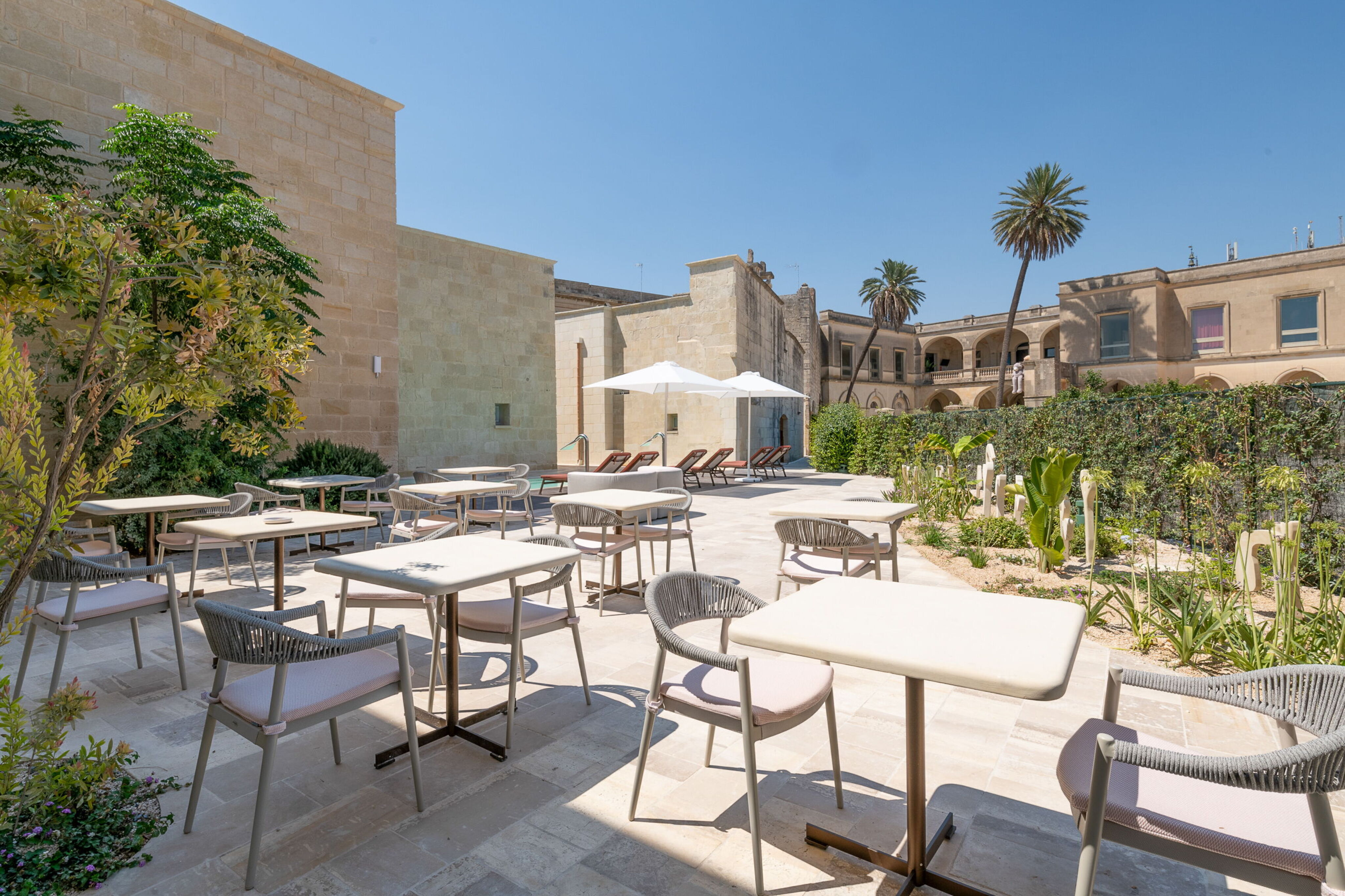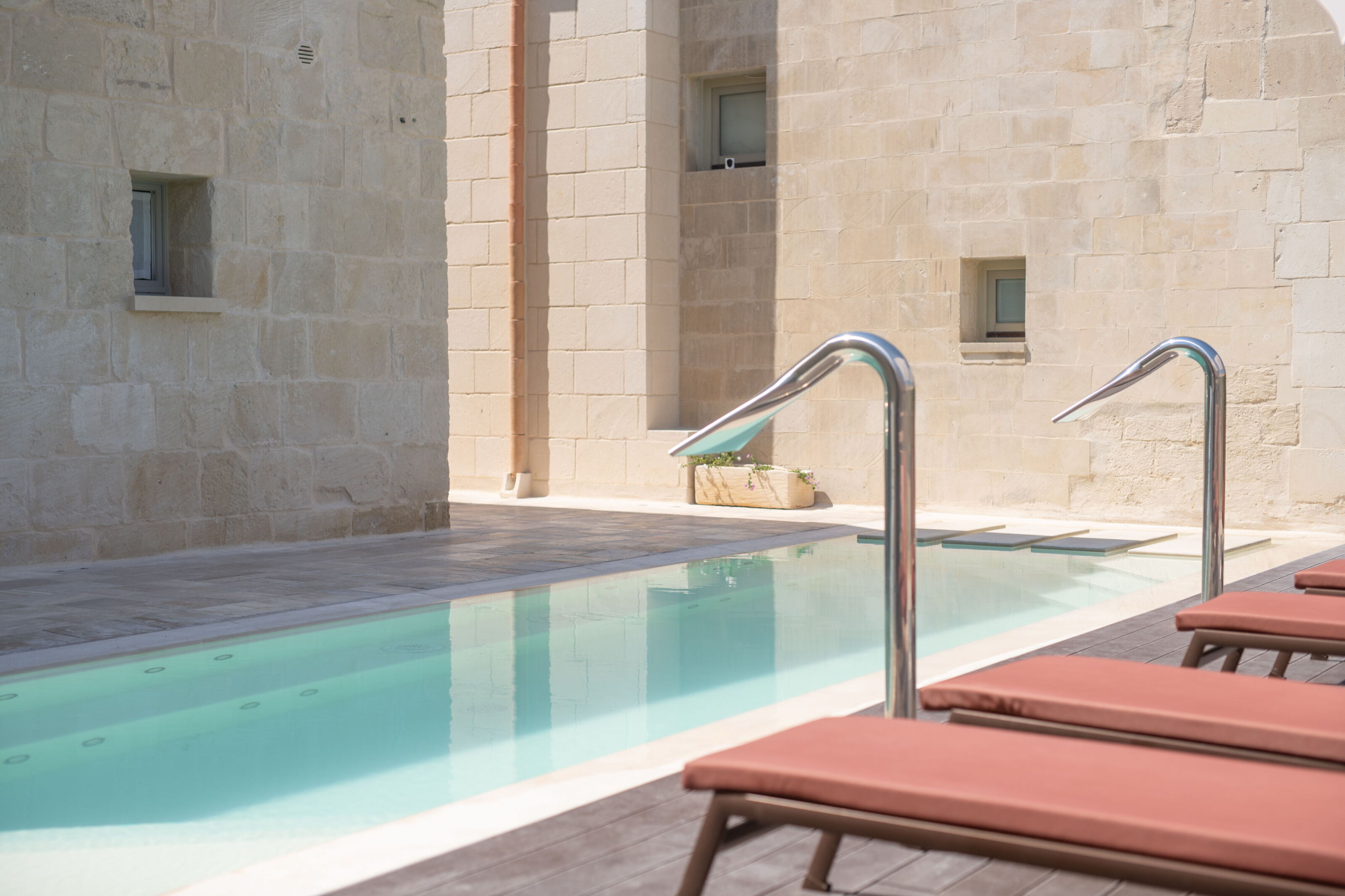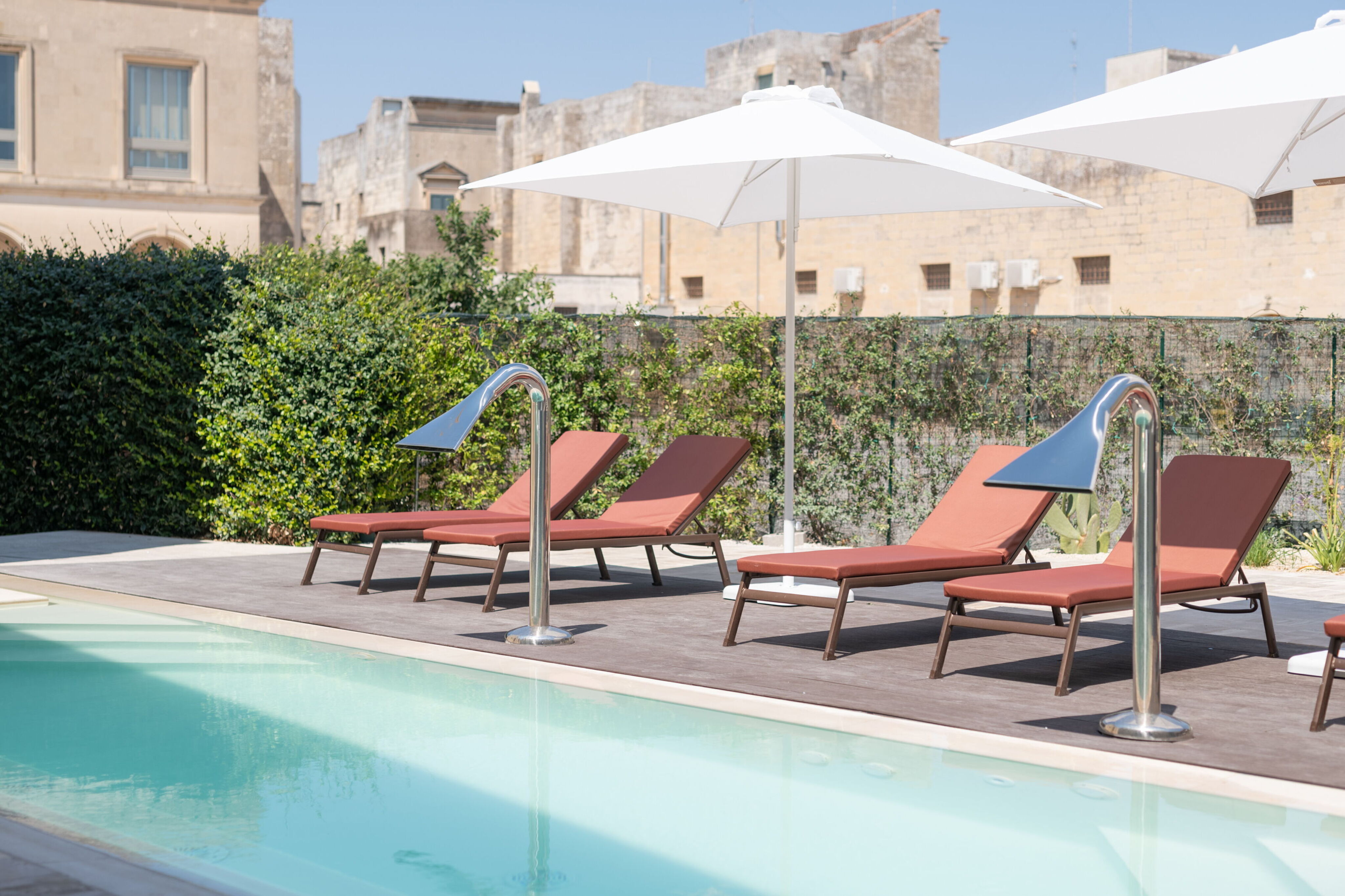 L’atmosfera complessiva è raffinata e rilassante: la corte interna, con piscina esterna riscaldata e zona solarium (lettini e ombrelloni), invita allo svago e al relax.